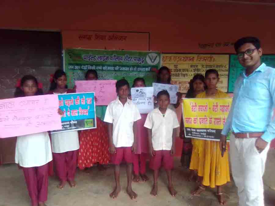 CHILDLINE is a 24-hour free toll free-help-line and outreach service for children in need of care and protection that links children to a long-term services. It is a project of the Ministry of Women and Child Development, Government of India. This service has been started in all the six blocks of Pakur district. Our organization served as a collaborative organization for this Child help line Service in Pakur district. We are in the seventh year of serving the CHILDLINE service in Pakur District. Through out the year we have taken a total of 2000 + numbers of child cases of different category like missing children, child in need of medical treatment, child trafficking, child abuses etc. this year we have also activate the child help line toll free number 1098 in Pakur block of Pakur district at our Childline collaborative center at Pakur. Funding partner – Childline India Foundation, Mumbai.